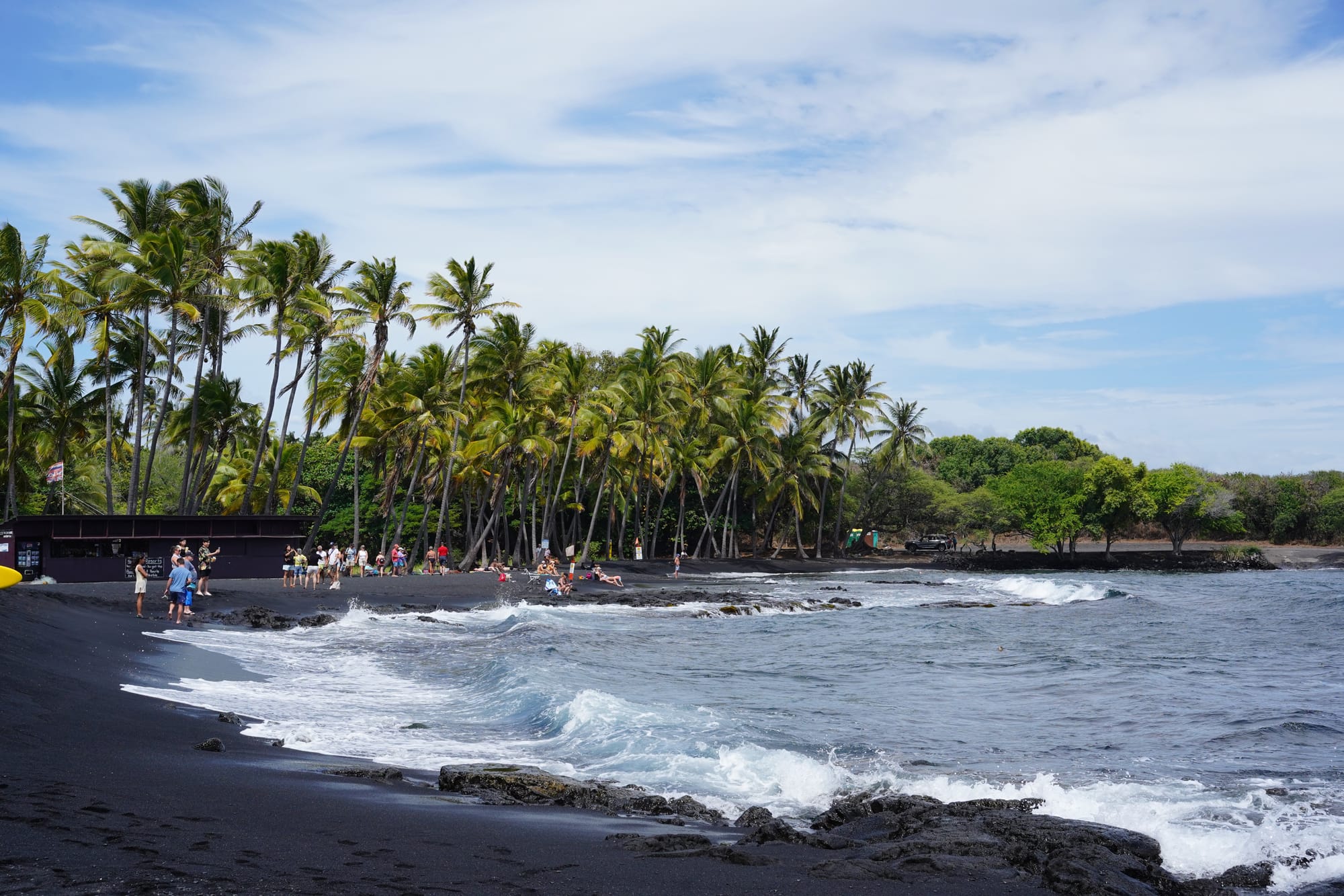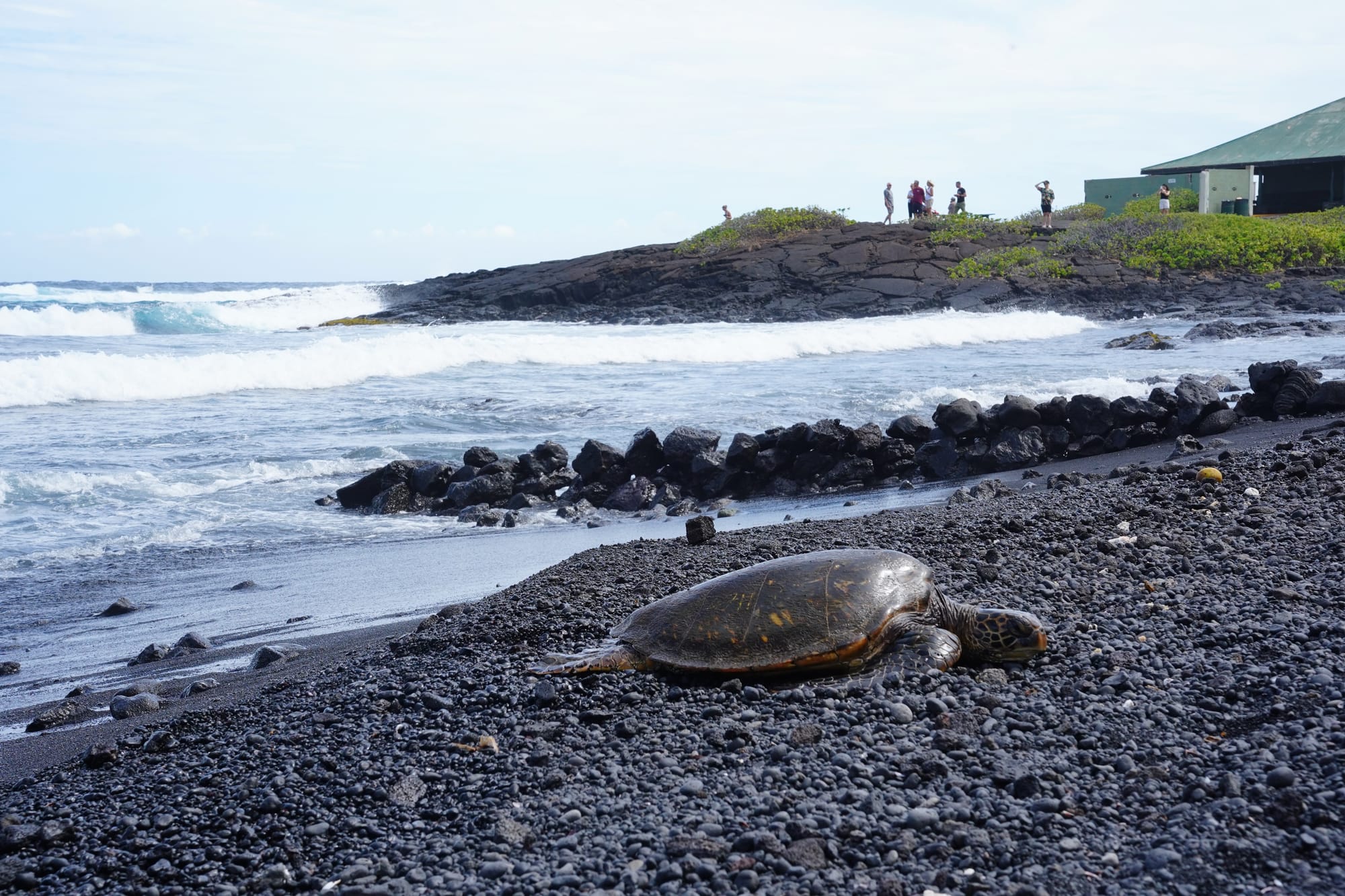 沿海再往東走,會經過夏威夷最著名的黑沙灘之一 Punaluʻu Black Sand Beach。