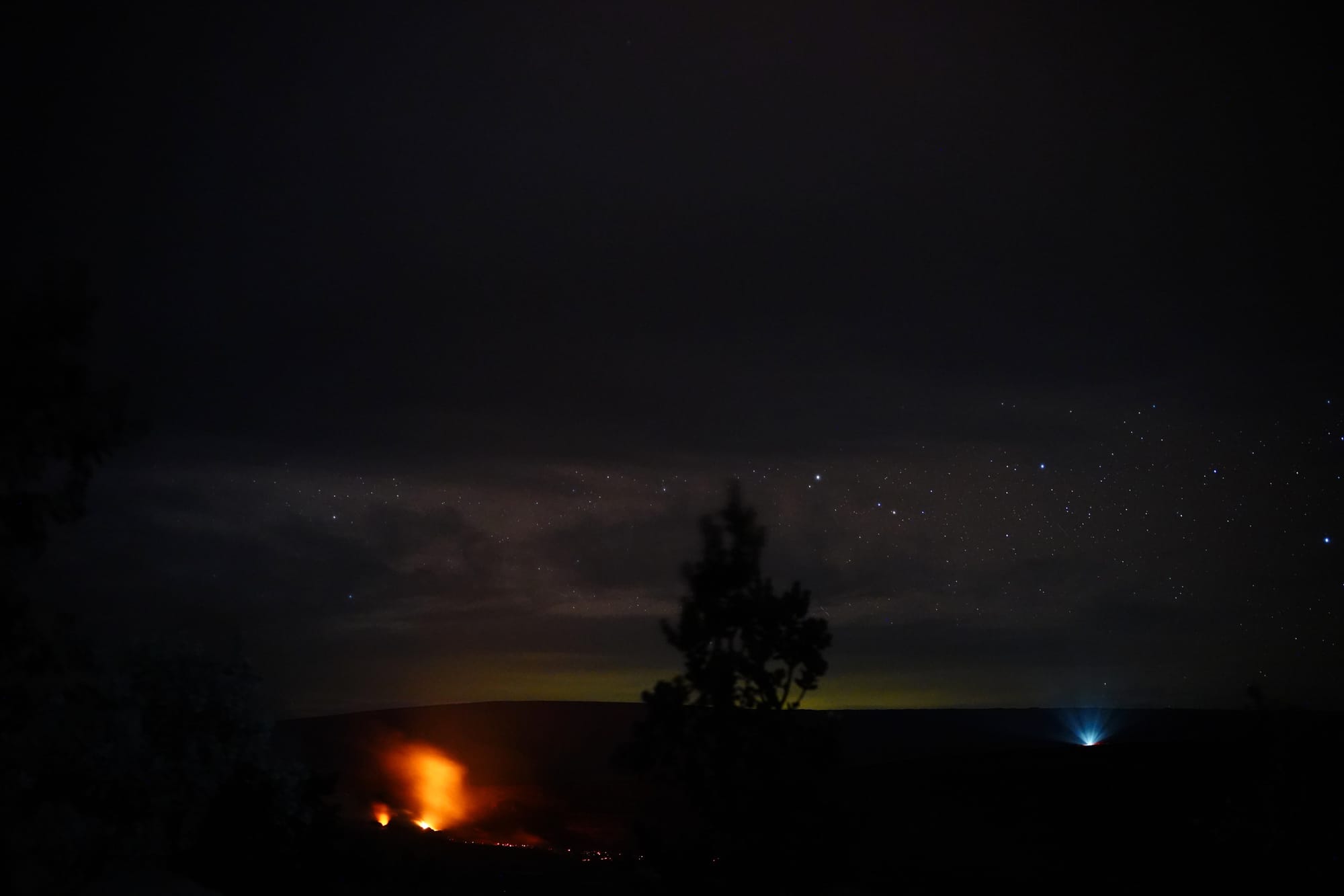 晚上走在Devastation Trail,這是一條可以近距離看到火山爆發的地點,可惜等了兩小時,遠處只有淡淡的紅光,像慢慢滾起的火鍋。無光害的夏威夷大島,一抬頭就看見整遍星空及銀河。