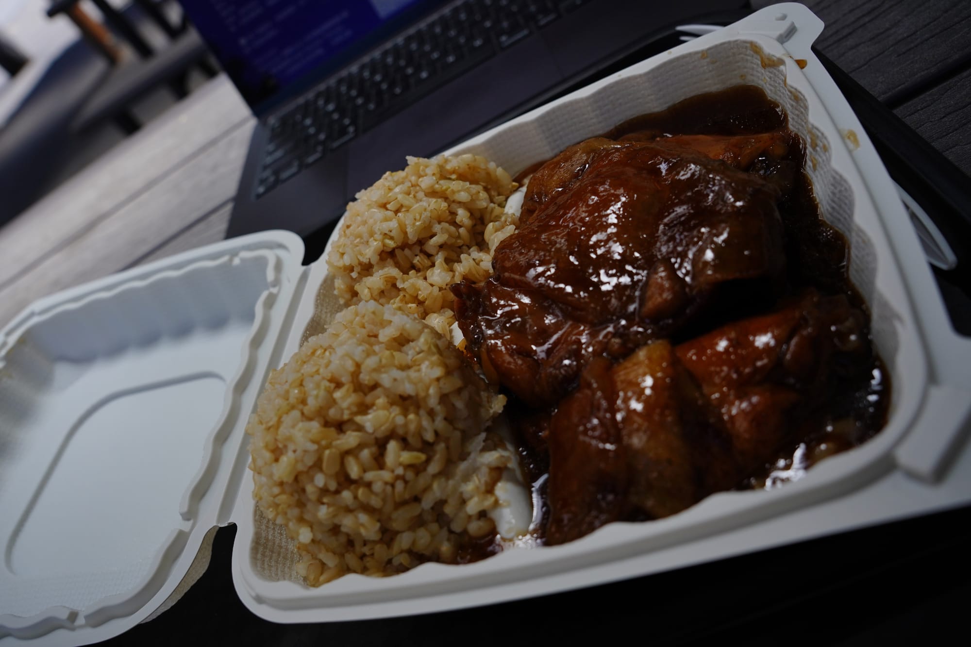 回程因為海岸路不能直去 Hilo → 必須折返國家公園方向,中途停在小店買當地便當,很樸實但意外好味。
