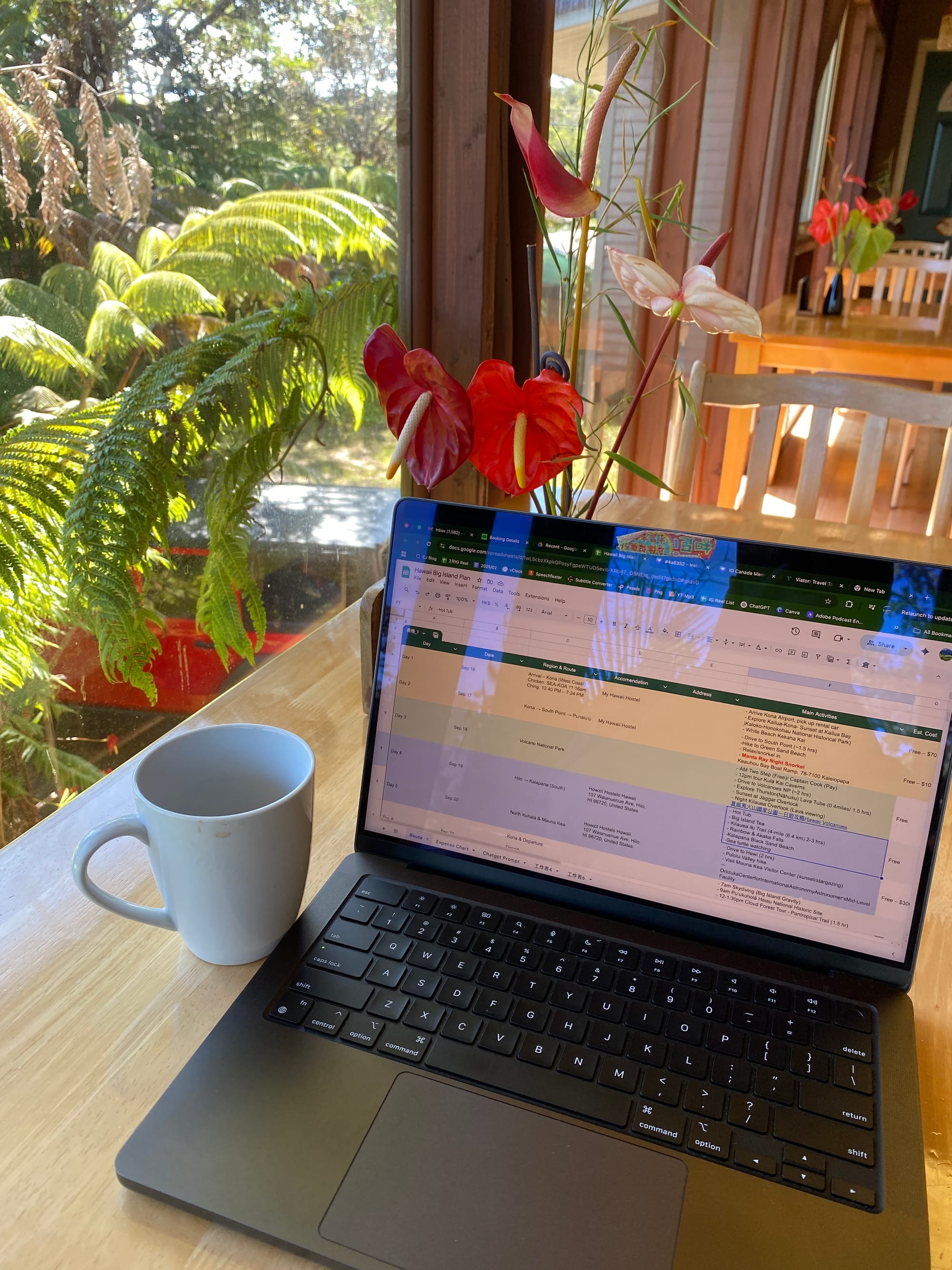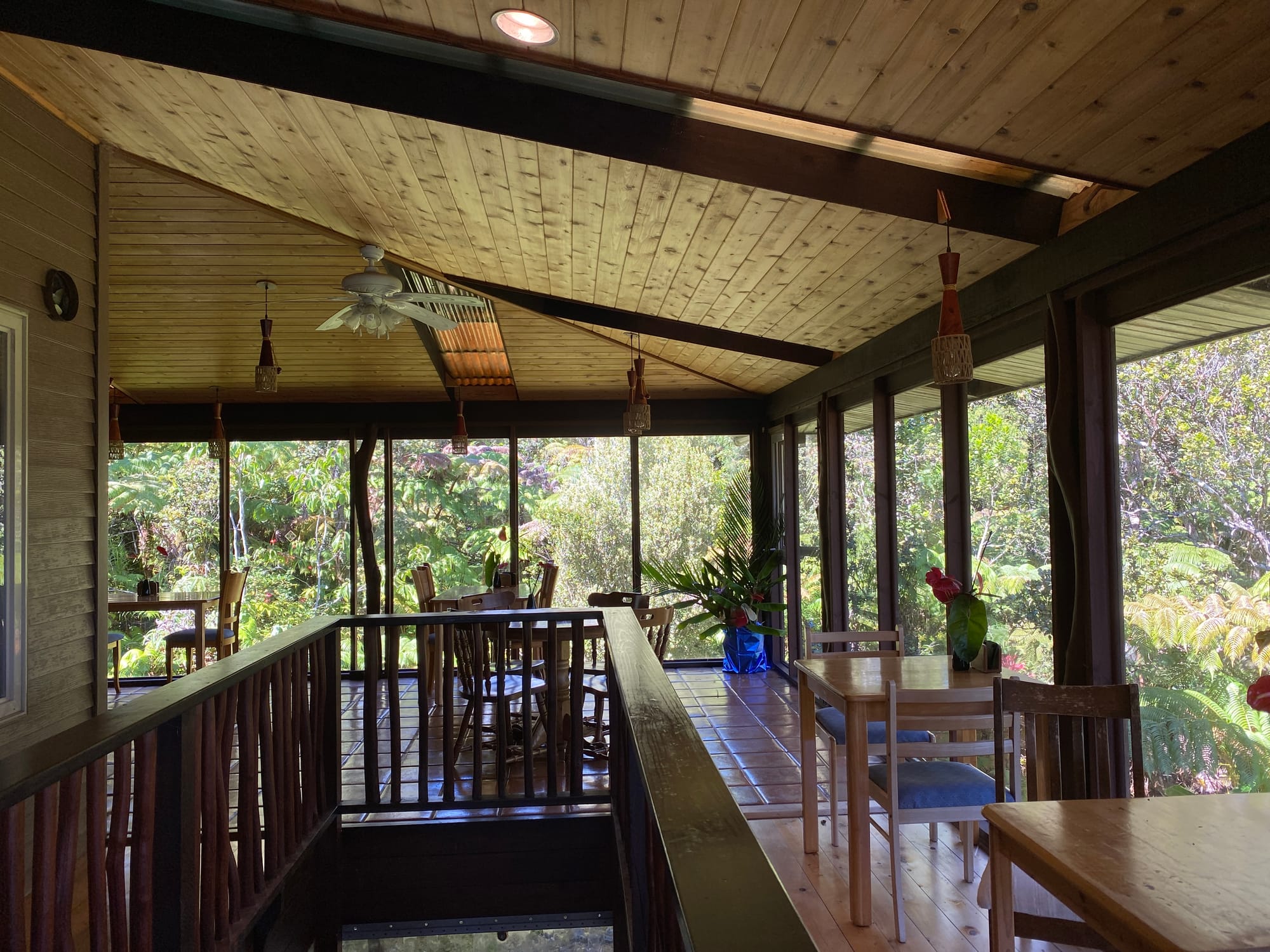 忘了介紹,從火山歸來後,我們回到坐落於森林中的 Volcano Inn。旅館環境寧靜,被大量綠意包圍,其最大亮點是公共空間的落地玻璃,讓清晨的陽光與森林氣息自然流入室內。